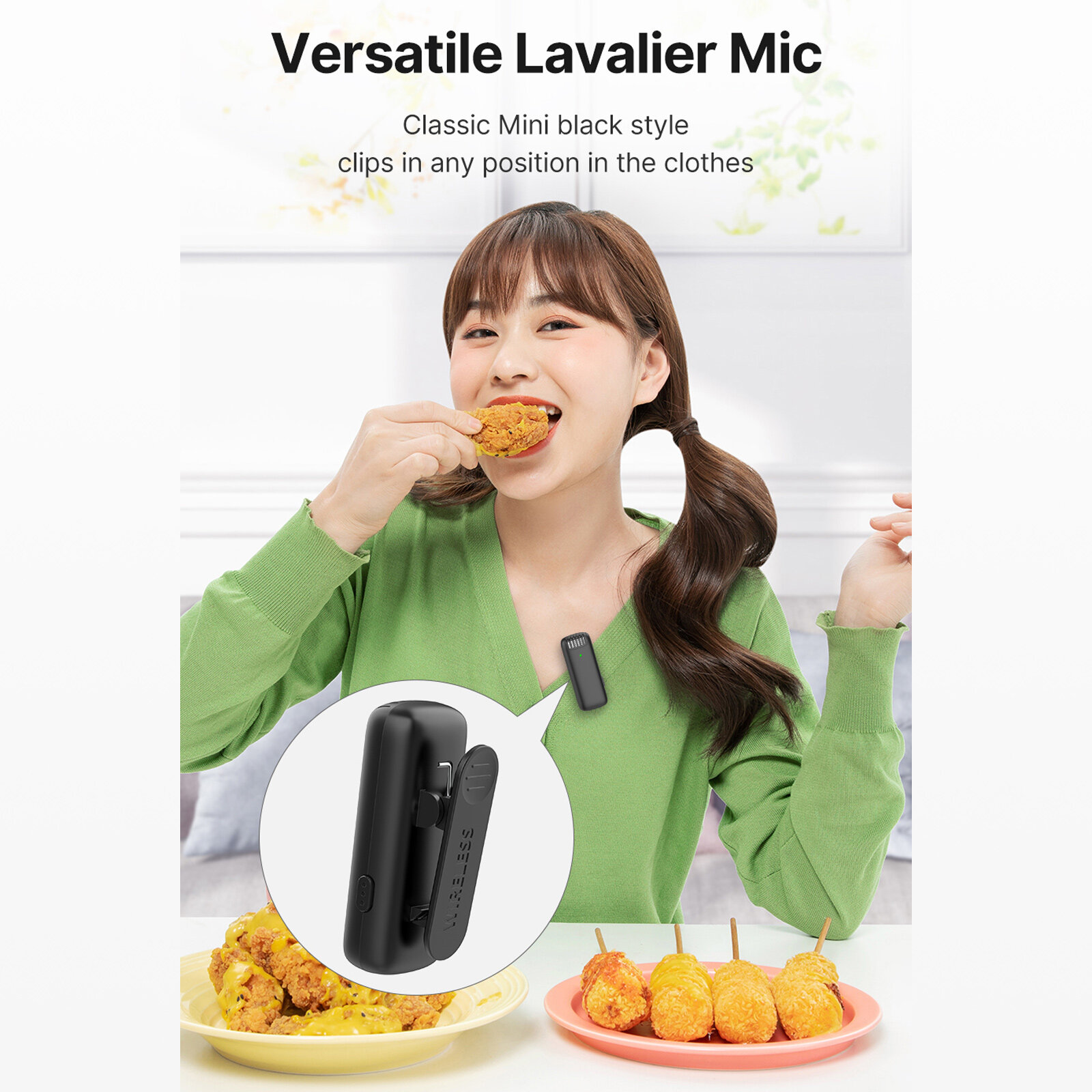 【Wireless Microphone System】Including 1 receivers & 2 microphone transmitters, supports dual microphone simultaneous recording, plug-and-play, no APP needed, very suitable for phone vlog, live streaming, interview, online chatting, etc.