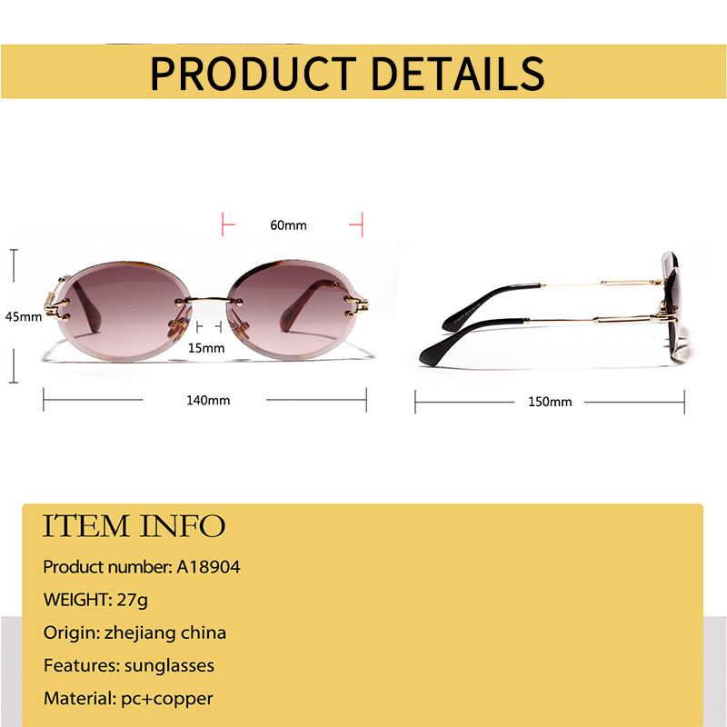 Rimless Cut Edge Sunglasses for Men Women Oval Fashion Glasses UV400 Metal Frame 2020 New Style Sun Glasses PTQ