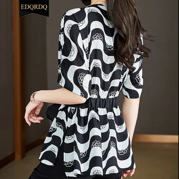 EDQRDQ Floral Tops Ruffles V Neck Petal Sleeve Batwing Blouses for Women