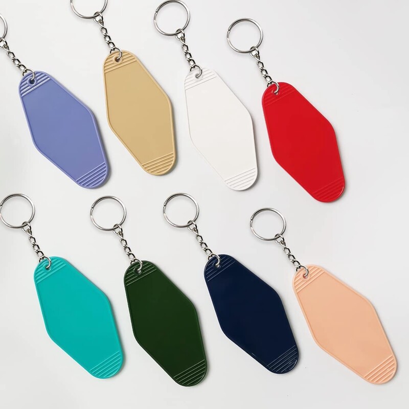 Package Contents: 32pcs Vintage Motel Keychains Blank key tags in different colors, including 4 clear colors.