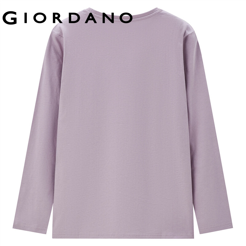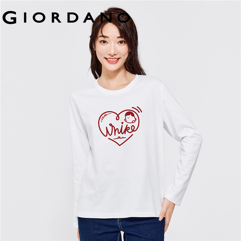 GIORDANO Women WHIKO Series T-Shirts Print Cartoon Pattern 100% Cotton Casaul Tee Long Sleeve Crewneck Simple T-Shirts 99392151