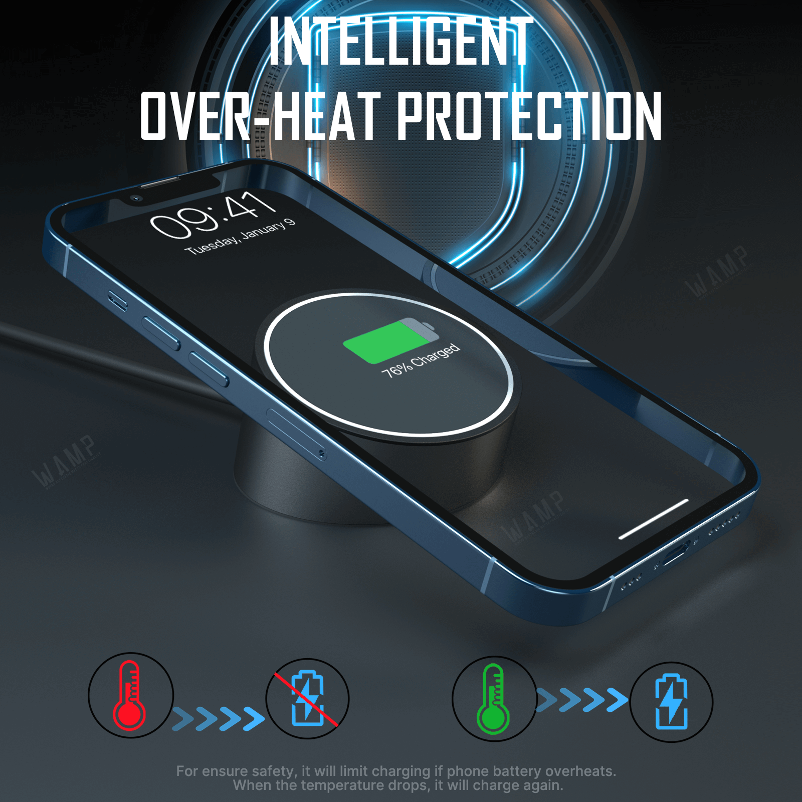Fiddling with your phone's charging cable can be irritating at times. JSAUX 15W Magnetic Wireless Charger uses a strong magnetic array to ensure your iPhone 14/13/12 is in the perfect position for charging and provide convenient charging for situations when you don’t need a super-fast recharge.