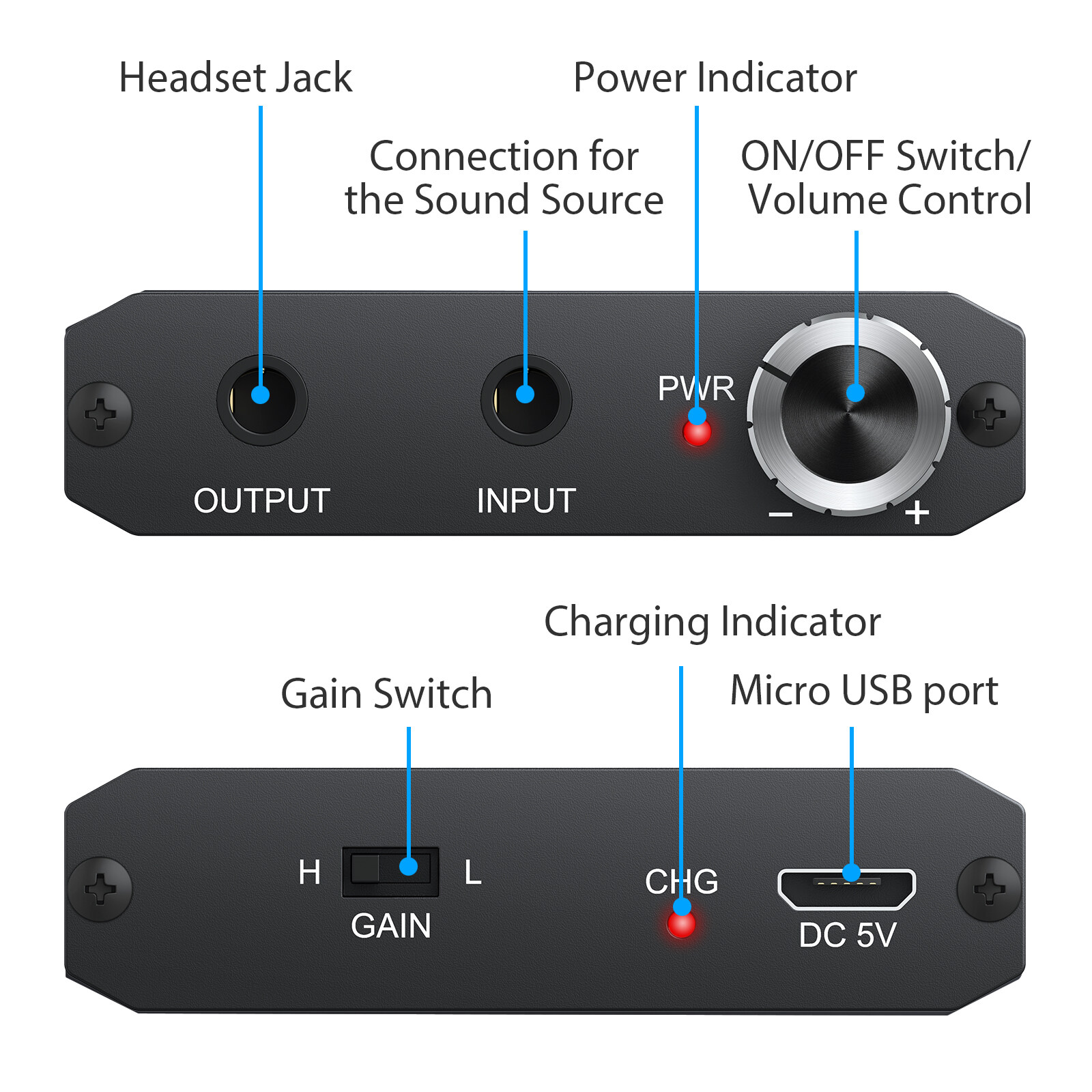 READ Portable HiFi Headphone Amplifier Headphone Amp 3.5mm Stereo Audio Out with Switch Powered Dual-Output with 2-Level Boost