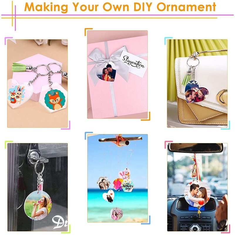 Warmly Note: Before using the Keychain Blanks, please tear off protective films on both sides of every single one of them and you will get perfect blanks. Moreover, please print the image on the blanks, you will get a nice Ornament Blanks, also you can print on 2 sides, because of its double-sided Blanks.