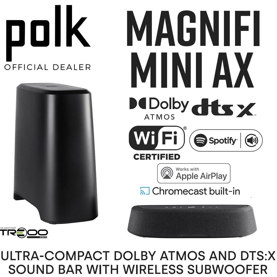 Polk Audio Magnifi Mini AX Dolby Atmos and DTS:X Wireless Bluetooth/WiFi/Ethernet Soundbar Speaker with Wireless Subwoofer