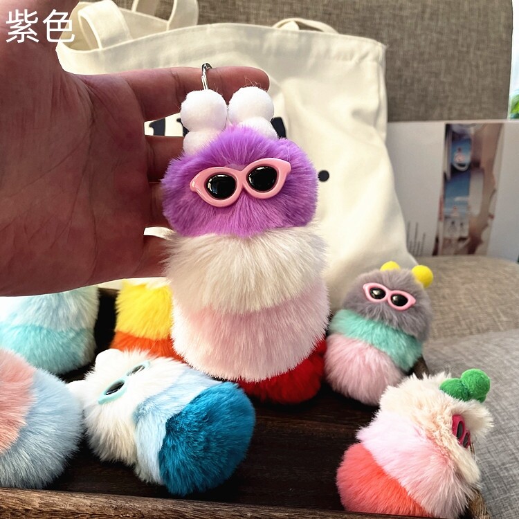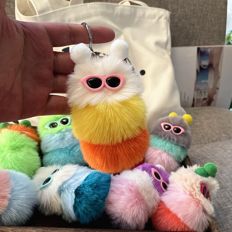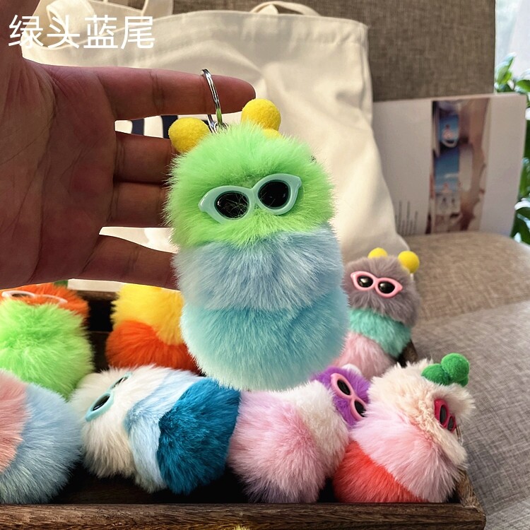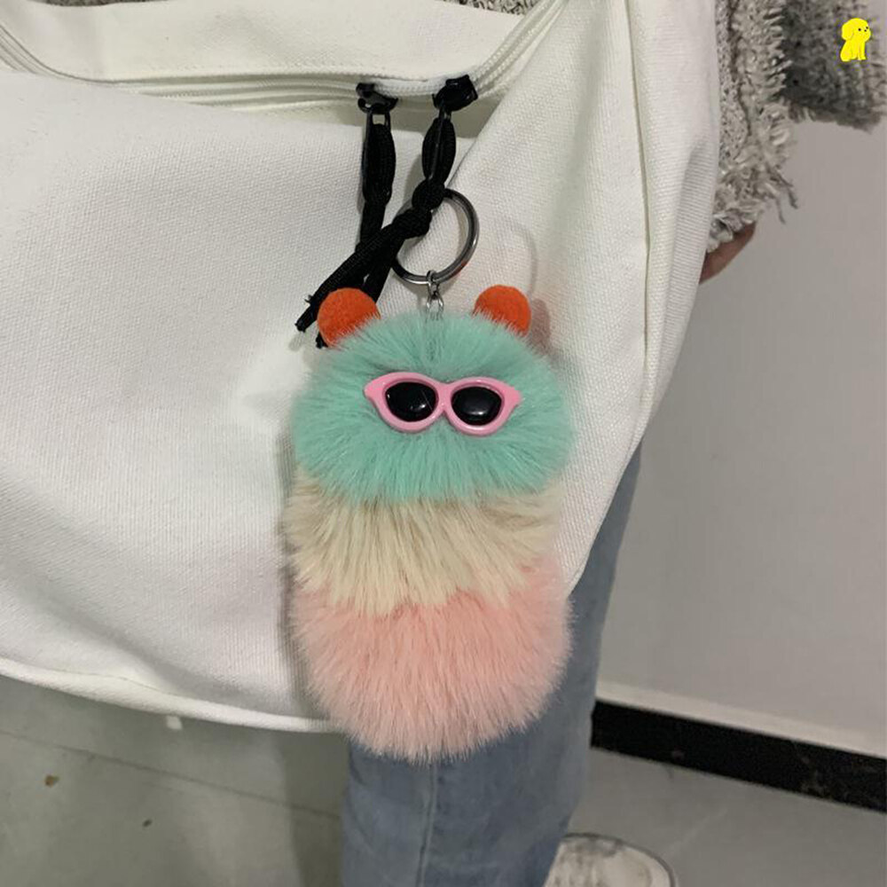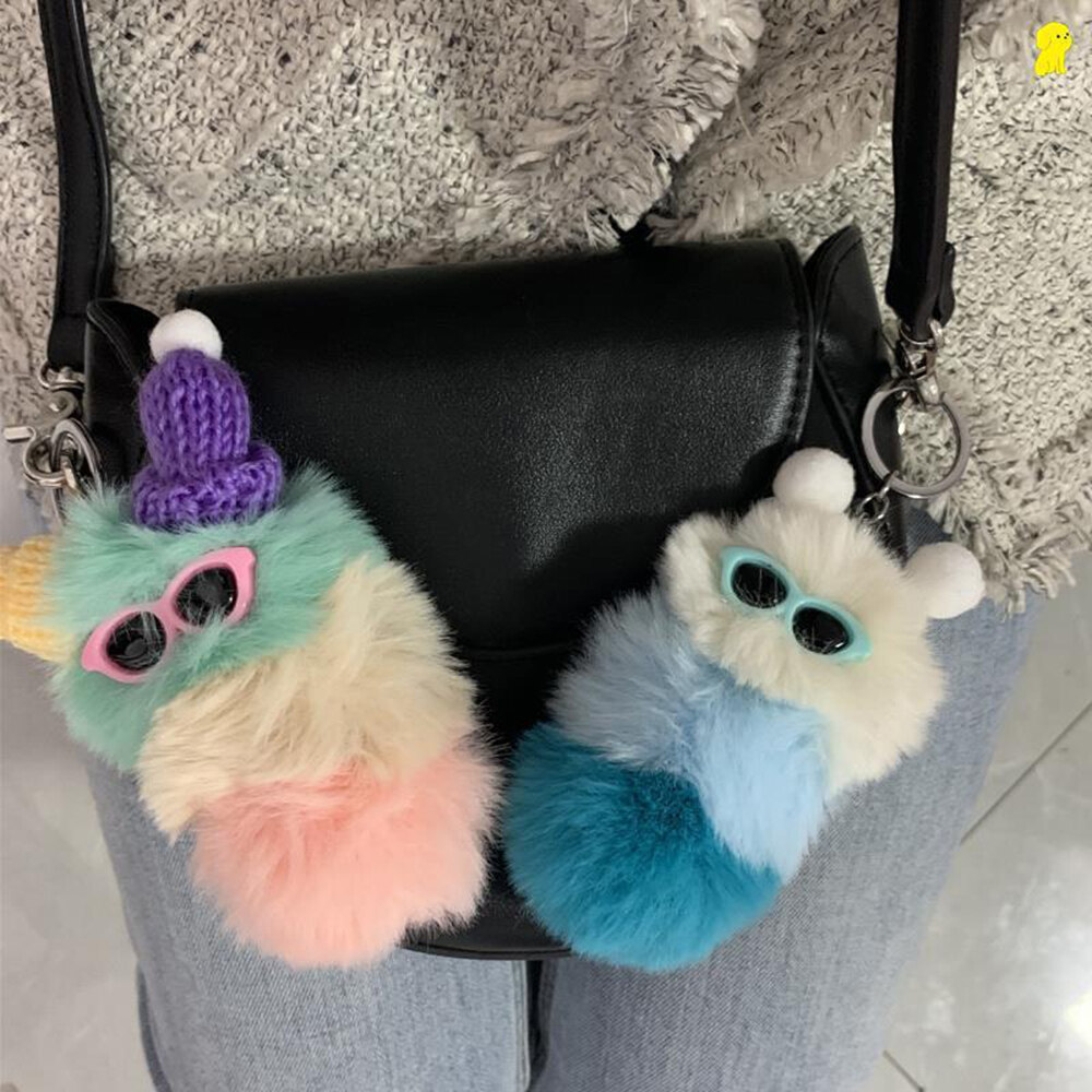 【Fashion-jewelry】Cartoon Cute Caterpillar Keychain Plush Ornament Rabbit Ball Ladie Bag Ornament Mini Plush Car Keychain Lanyard Jewelry Gift