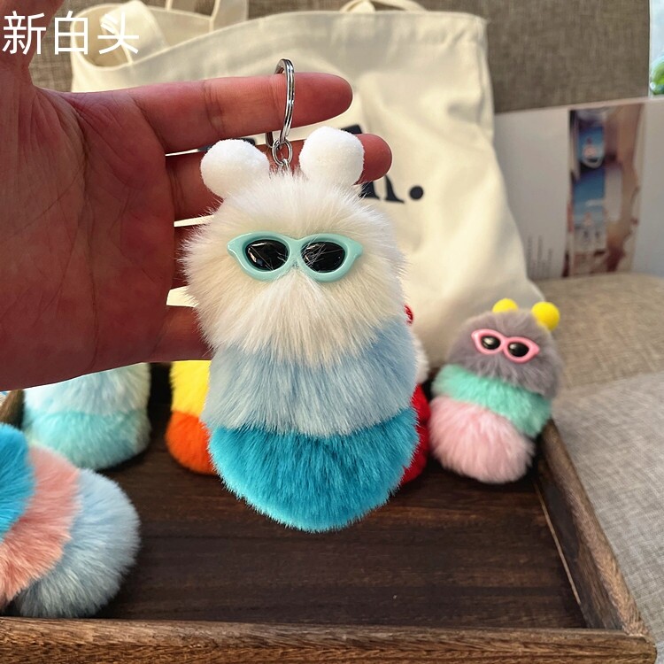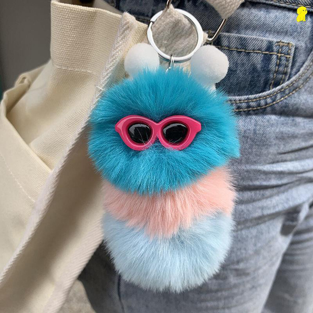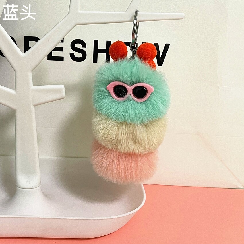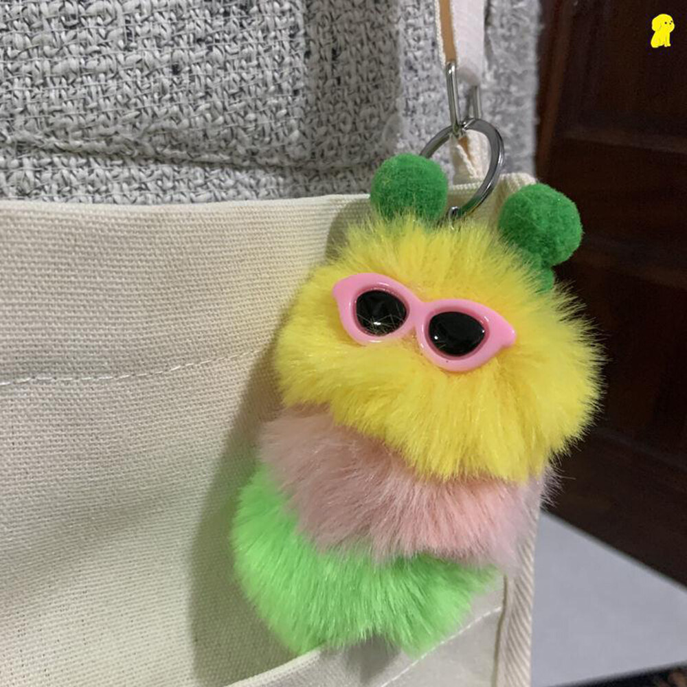 【Fashion-jewelry】Cartoon Cute Caterpillar Keychain Plush Ornament Rabbit Ball Ladie Bag Ornament Mini Plush Car Keychain Lanyard Jewelry Gift