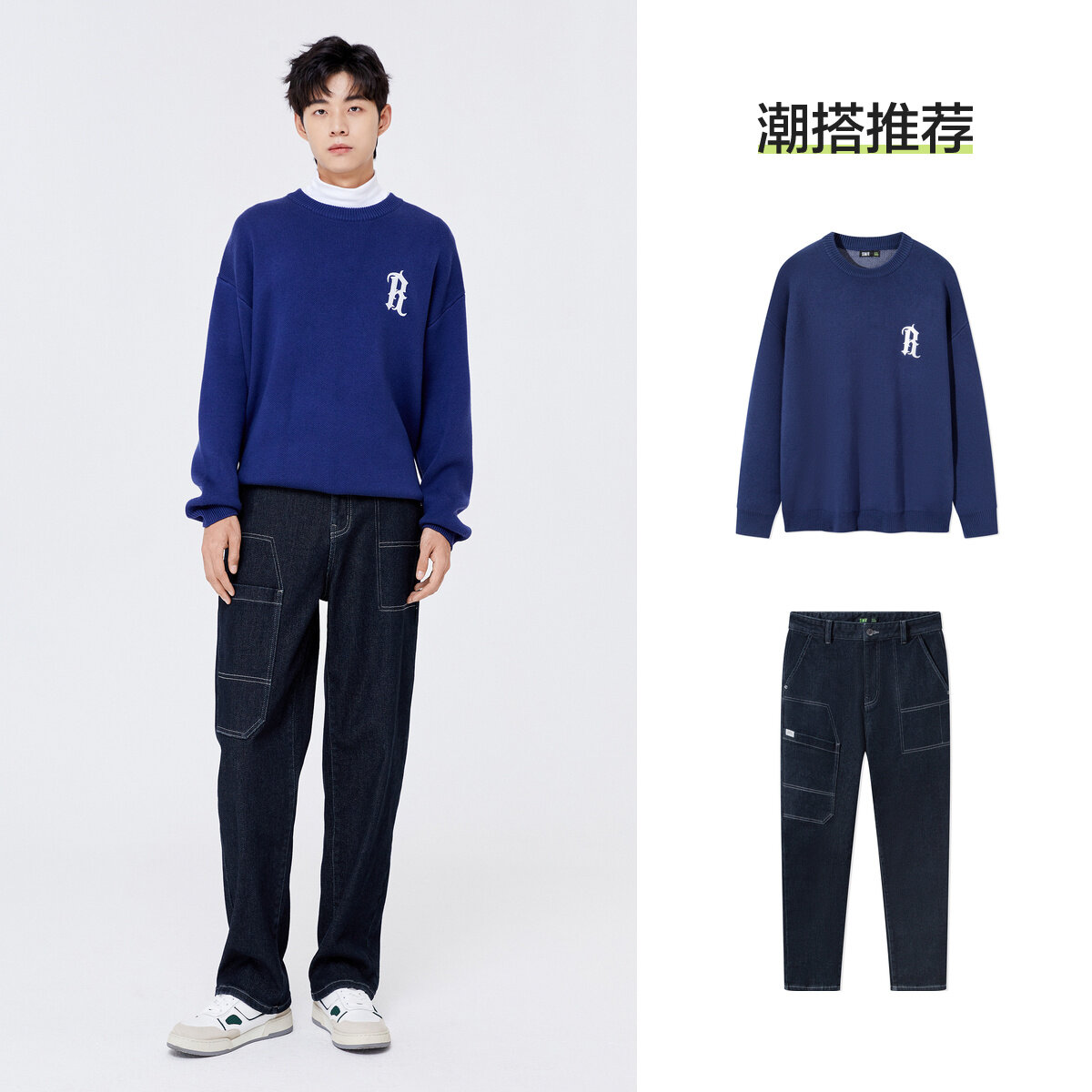 Semir Sweater Men 2022 Winter New Knitted Sweater Letters Korean Version Off The Shoulders Trend Comfortable Round Neck Top
