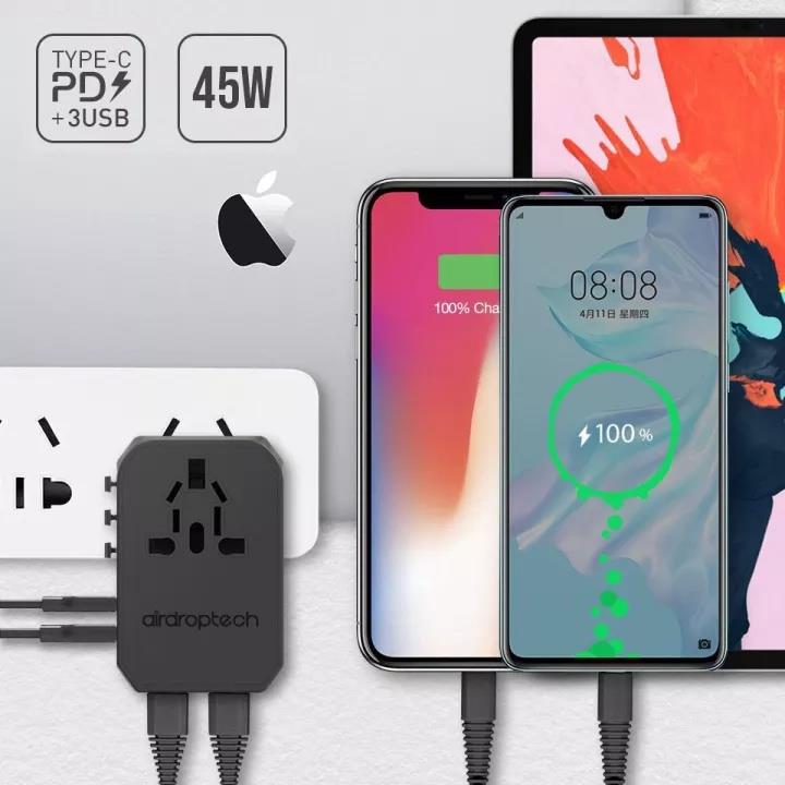 AIRDROPTECH 45W PD Type-C QC3.0 Port Universal Travel Adapter (Black)