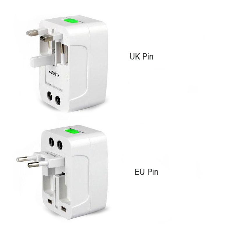 All in One Worldwide Travel Adapter AU UK US EU Power Plug Universal Wall AC100-240v Surge Protected Adaptor Charger with USB Charging Port International Converter Socket White (Dual USB Port)