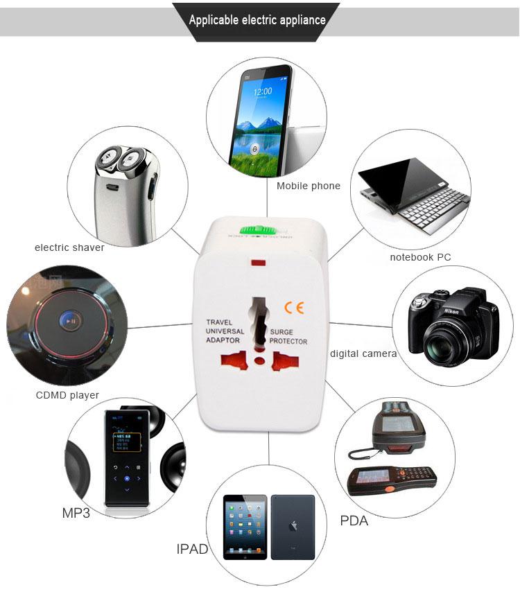 Universal Travel Plug Power Adapter TENACHI Built-in Surge Protector All in One Power Outlet Wall Changer Adaptor Works in 150 Countries EU UK US AU