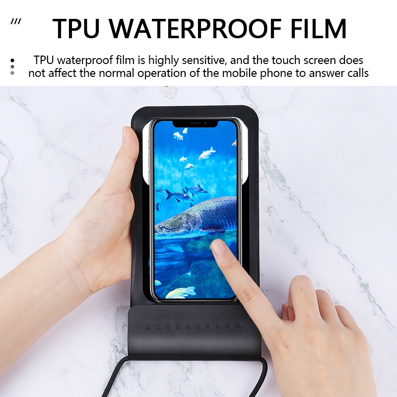 ☑️【Highly Sensitive Touch】: High-quality soft TPU material exclusively made for delicate touch and response. It ensures the normal use of a touch screen, camera and other functions in water.