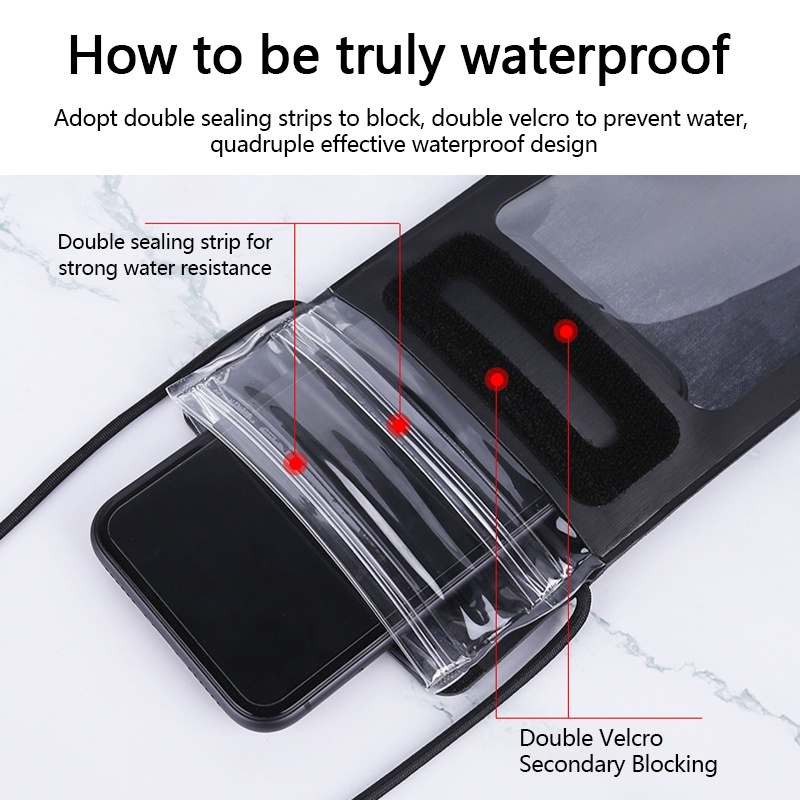☑️【Waterproof Phone Pouch】 :Four layers of sealing devices are used, two layers of sealing strips and two layers of Velcro to guarantee 100% sealing performance and ensure the safety of your phone. The material is made of synthetic leather + TUP to make you get a better experience.