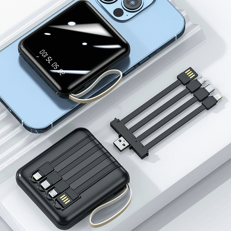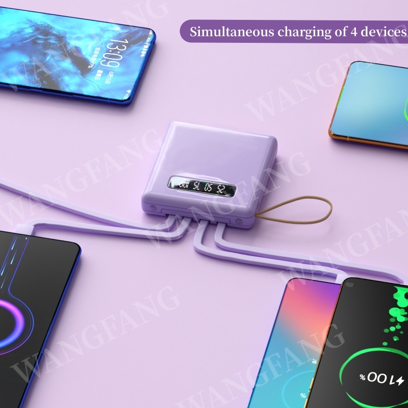 - Comes with detachable four-wire. Comes with Iphone interface, Type-c interface, Micro interface, USB interface. Charge 4 devices at the same time.