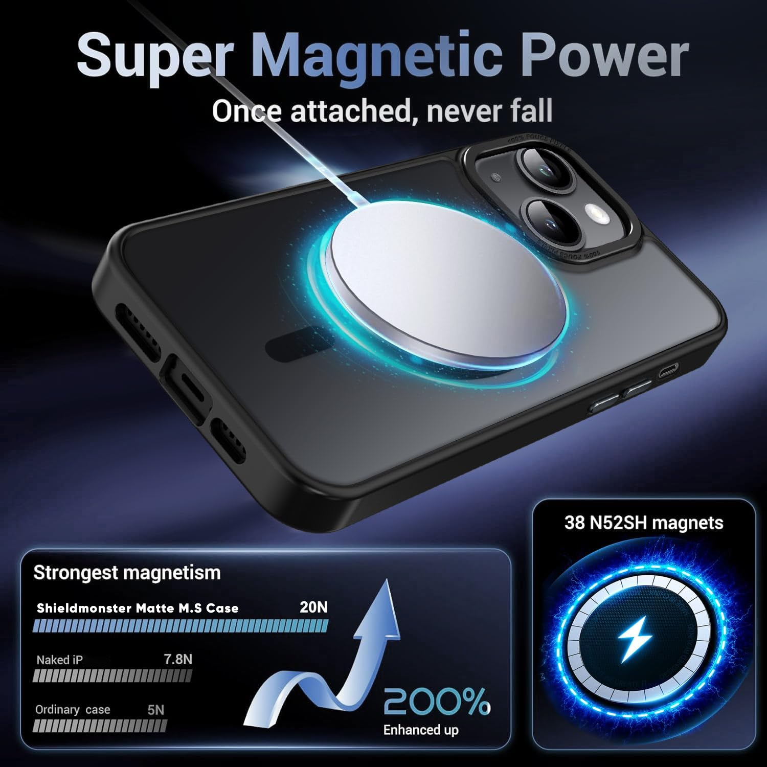 Shieldmonster Matte Magsafe iPhone Case 16 Pro Max/16 Pro/15 Pro Max/15 Pro/15/15 Plus/14 Pro Max/14 Pro/14/14 Max/13 Pro Max / 12/ 11/ XS/ XR/ X/ 8 Casing Clear Hard Soft Transparent Clear TPU cover