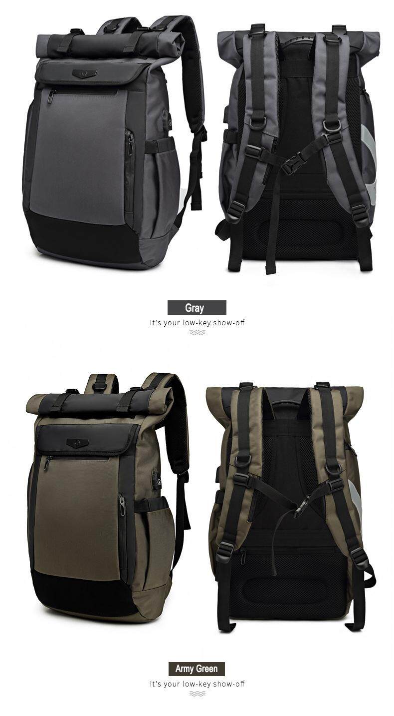OZUKO New Men Backpack Multifunction USB Charging Laptop Bag Fashion Schoolbag