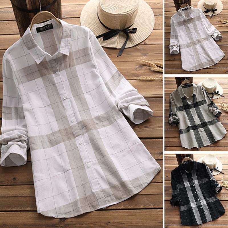 Fancystyle Gracila Women Check Plaid Long Sleeve Casual Loose Tops Shirt Blouse Plus Size