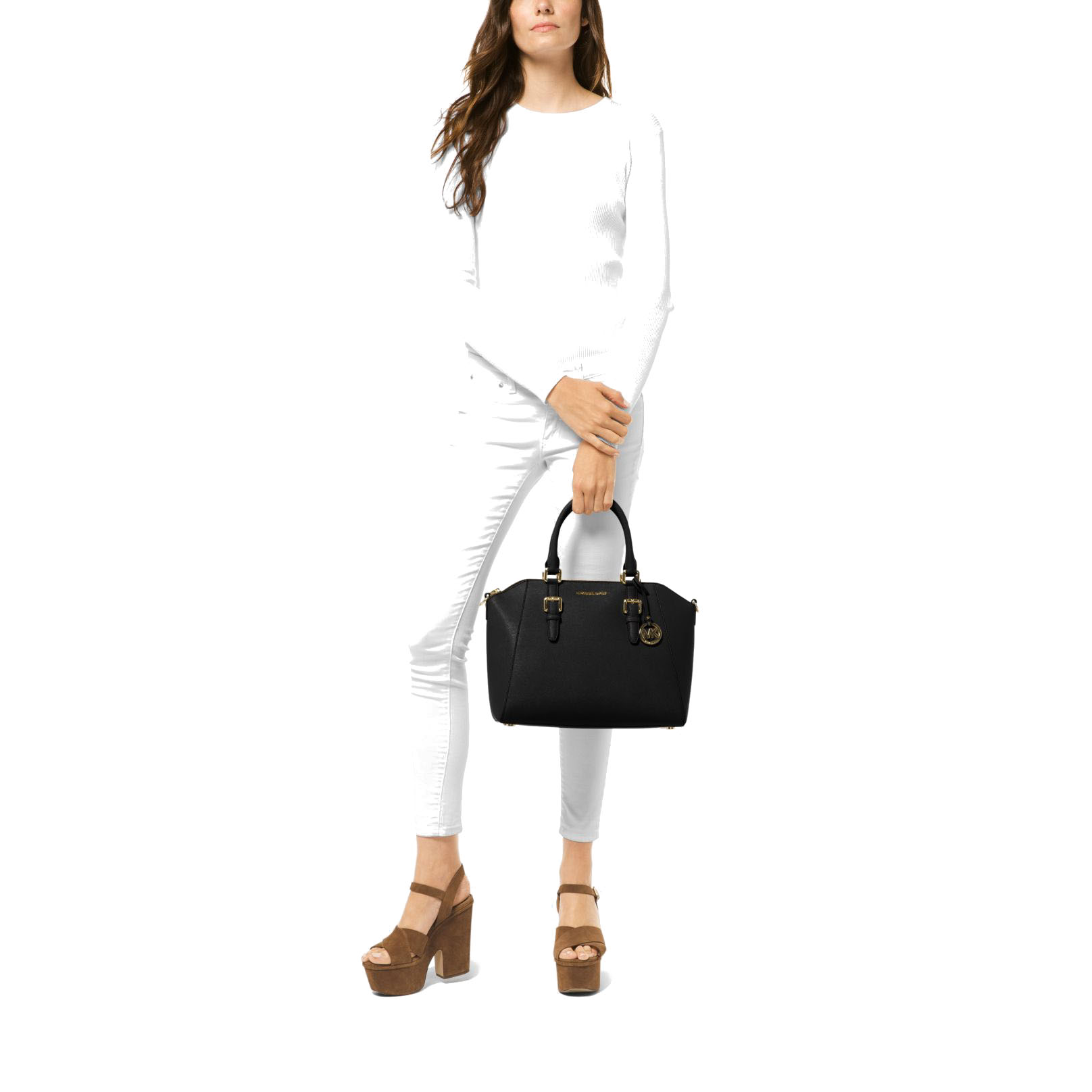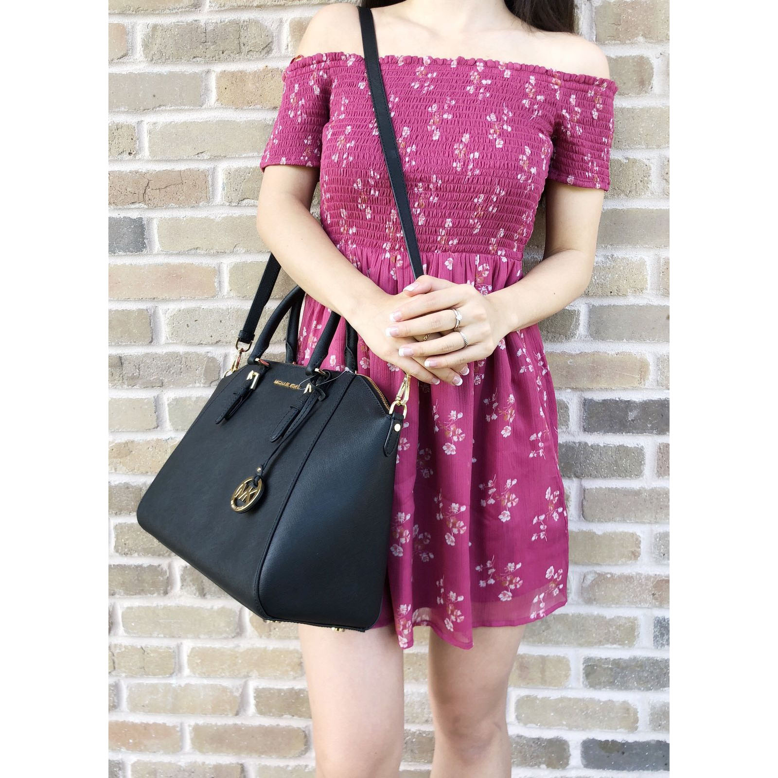 Michael Kors Handbag With Gift Paper Bag Crossbody Bag Ciara Large Top Zip Satchel Black # 35H5GC6S3L