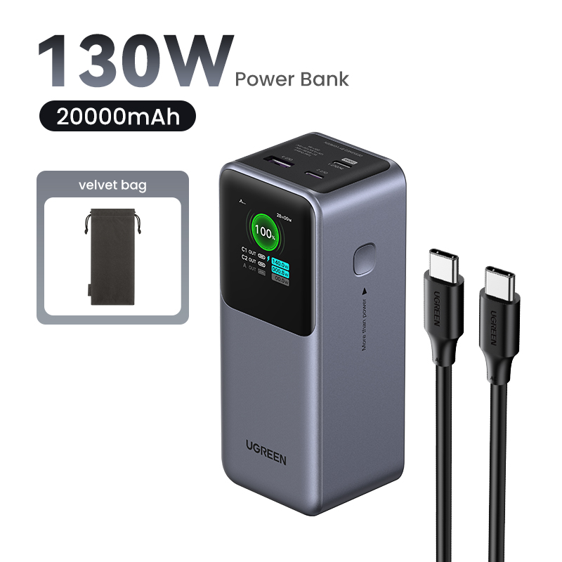 UGREEN 20000mAh Laptop Powerbank PD 130W Fast Charging Power Bank for Dell Lenovo MacBook Air Samsung S24 Ultra iPhone 15 14 13 Pro Max for Pixel iPad Xiaomi Huawei Mobile Phones Power Adapter Model: