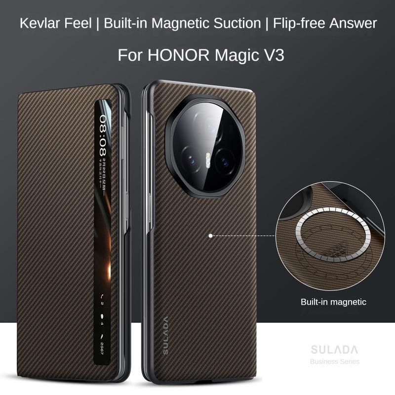 Case for Honor Magic V3 Kevlar 600D Textured Intelligent Window Folding Screen Protective Cover Wireless Charge Intelligent Sleep Anti-drop Shockproof Protective Case