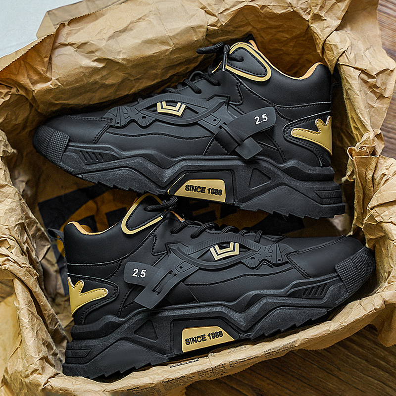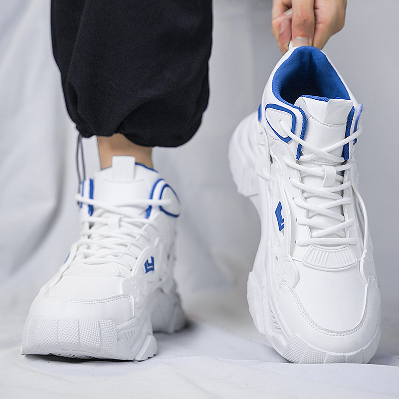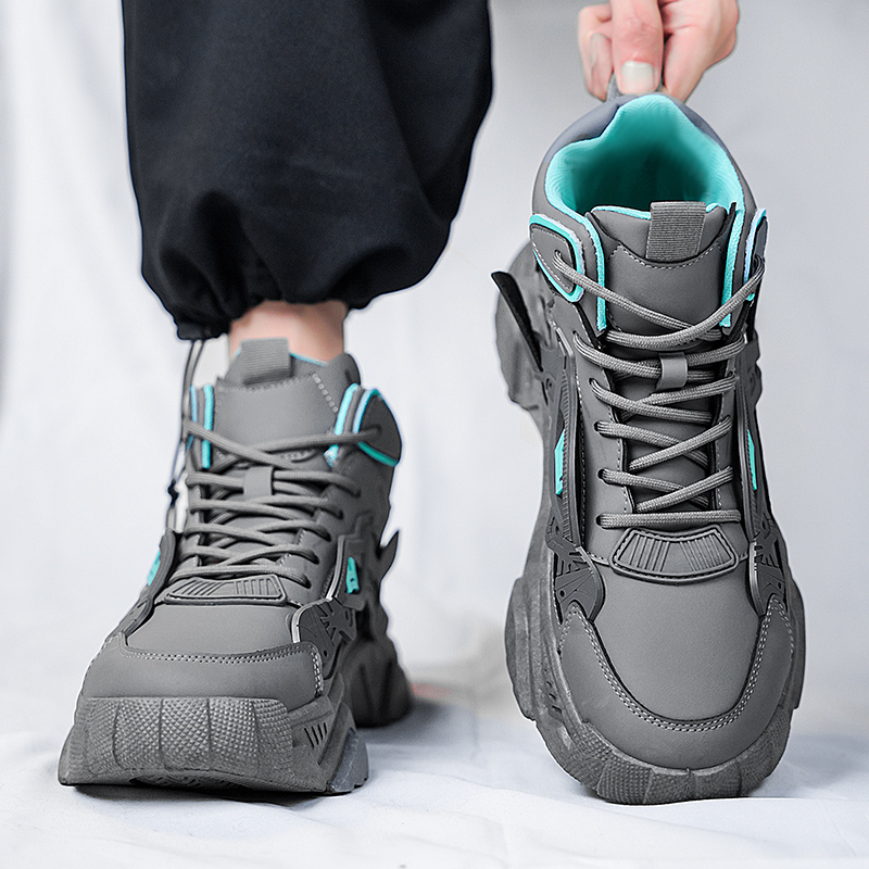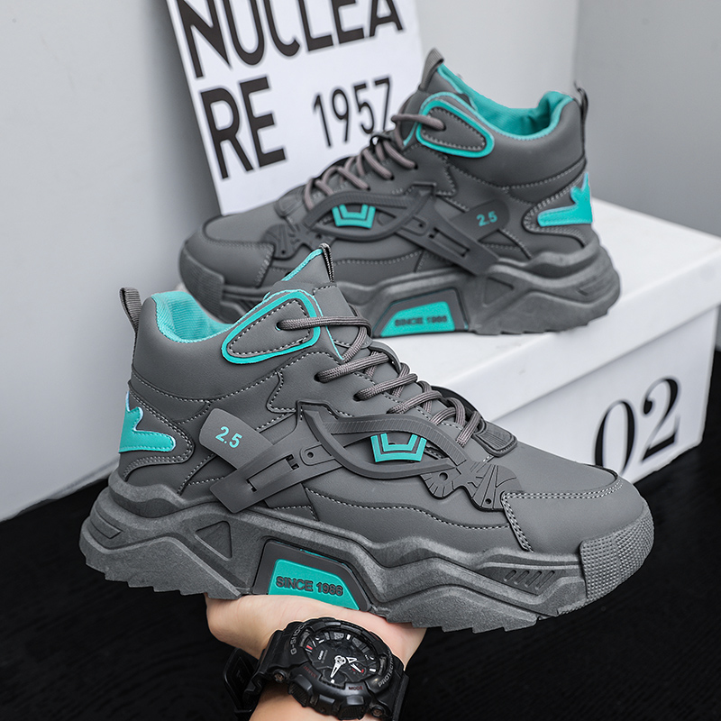【READY STOCK】Men's high top sports shoes, outdoor casual board shoes, thick soled lace up training running shoes.
