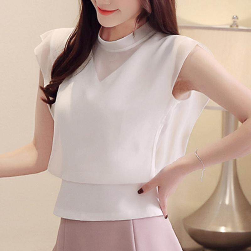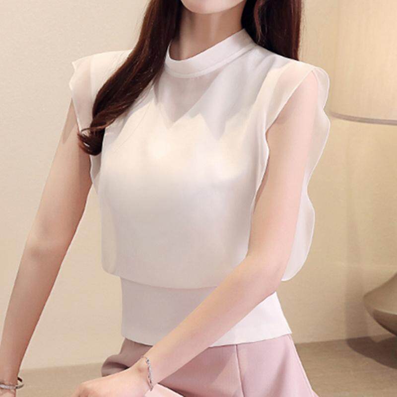 2019 New Fashion Summer Women Blouses And Tops Chiffon Sleeveless O Neck Female Shirts Office Ladies Casual Blouse