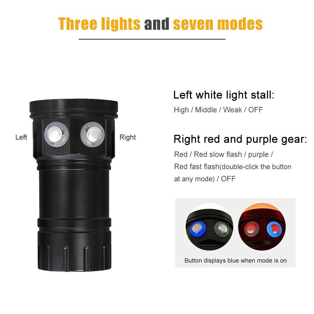 Asafee 20000LM XM-L2 LED Diving Flashlight XHP90 LED Photography Video light underwater 100m waterproof Tactical torch Lamp white red purple light
