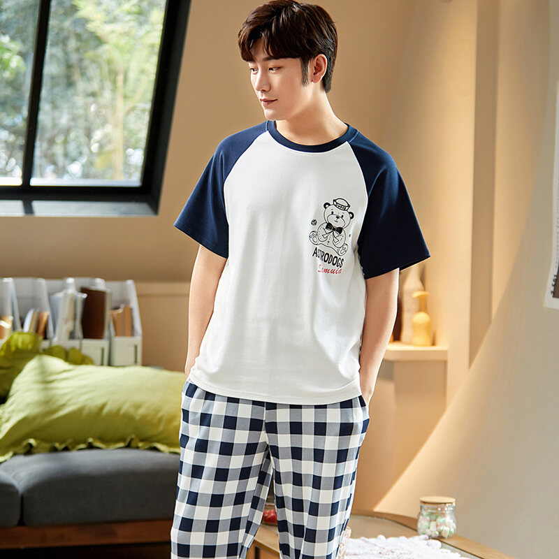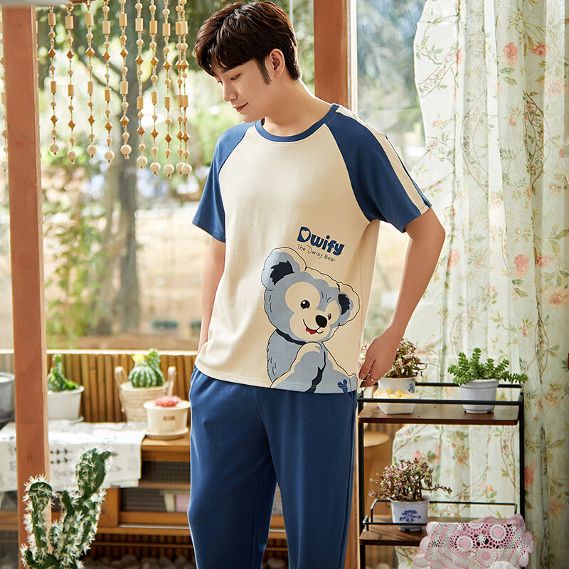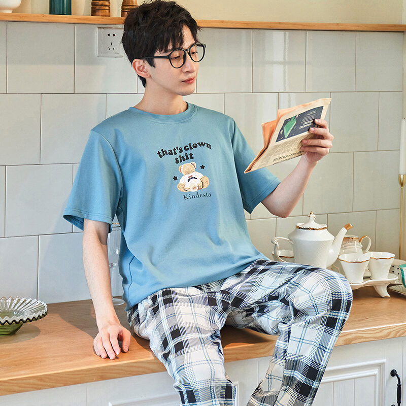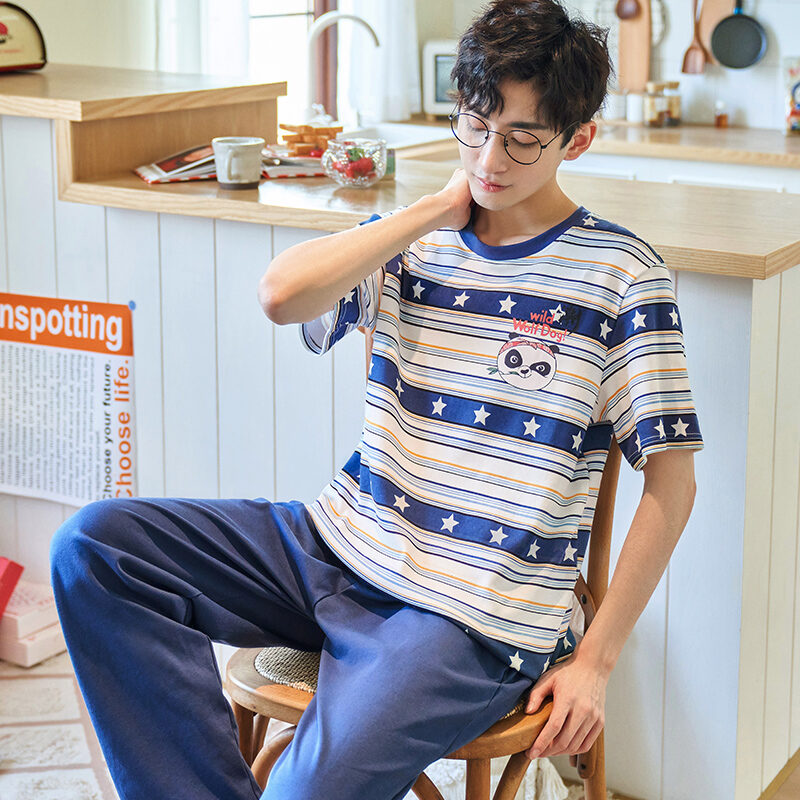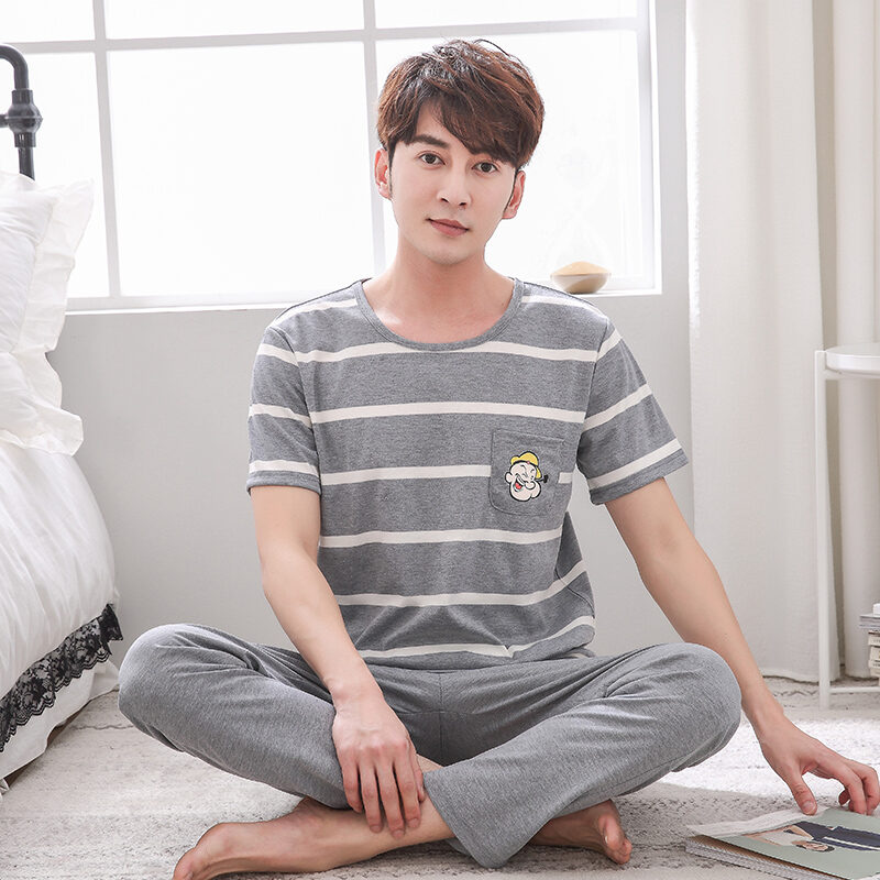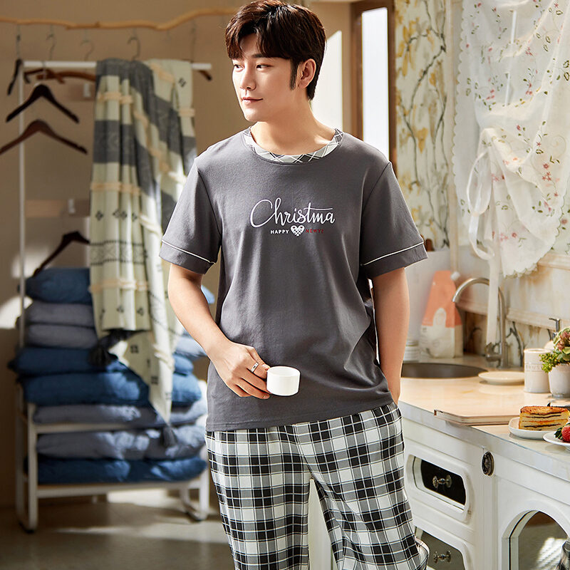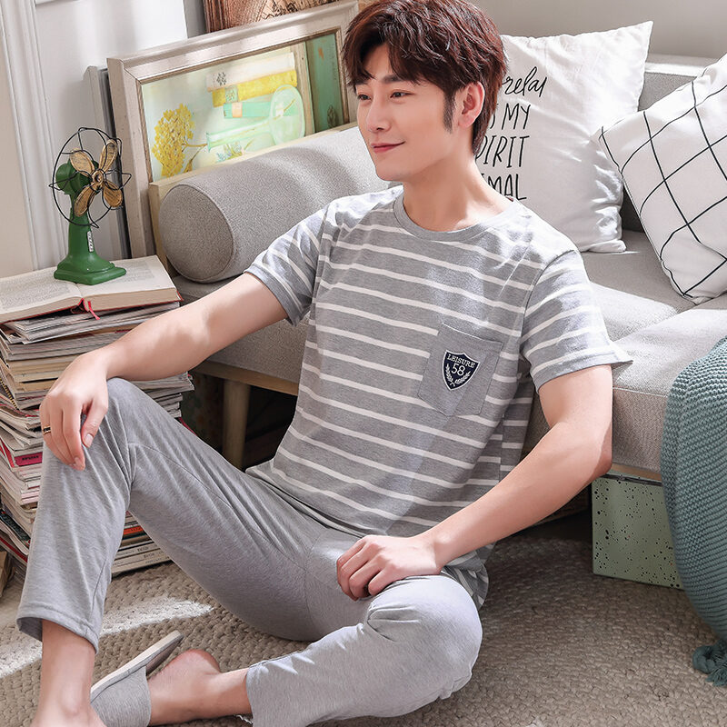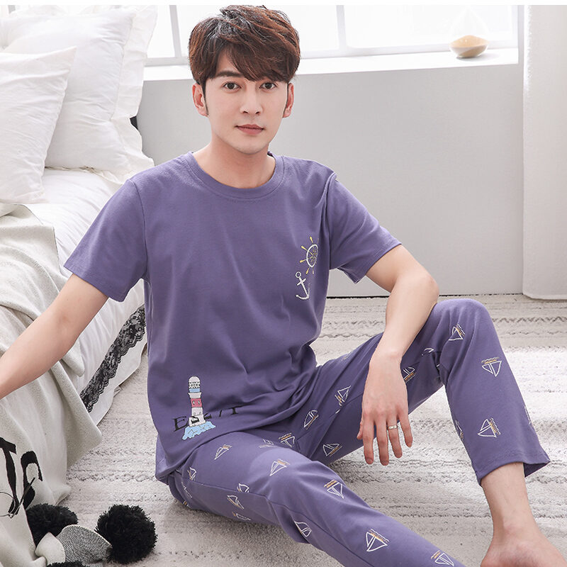 Good Goods Men's Pajamas Summer Cotton Thin Pajamas Men's Summer Short-Sleeved Trousers Purple Non-Pilling Spring Homewear