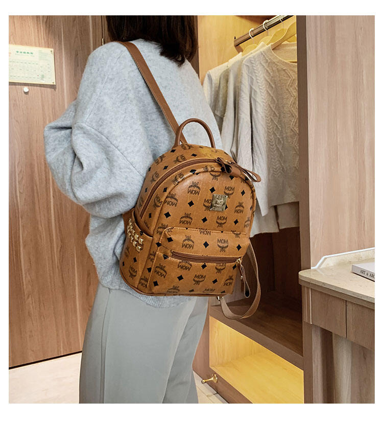 INS Super Fire Bag Backpack for Women 2022 New Mini Rivet Fashion Small Backpack Classic Printing Small Bag Fashion