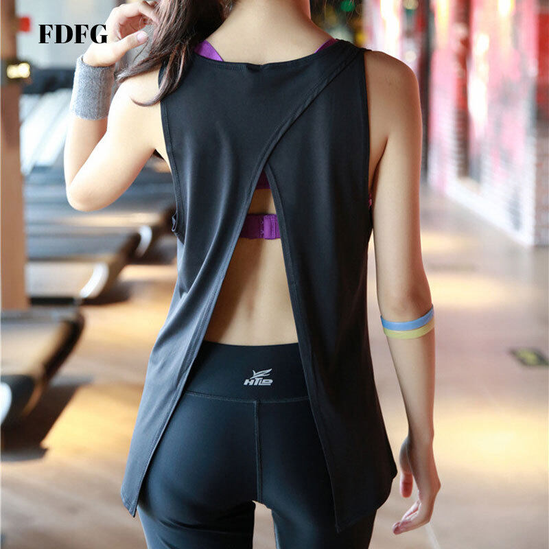 FDFG 【READY STOCK】Women Yoga Vest T-shirt Hollow Back Sports Fitness Tank Top Yoga Running Gym Jogging Vest Tops