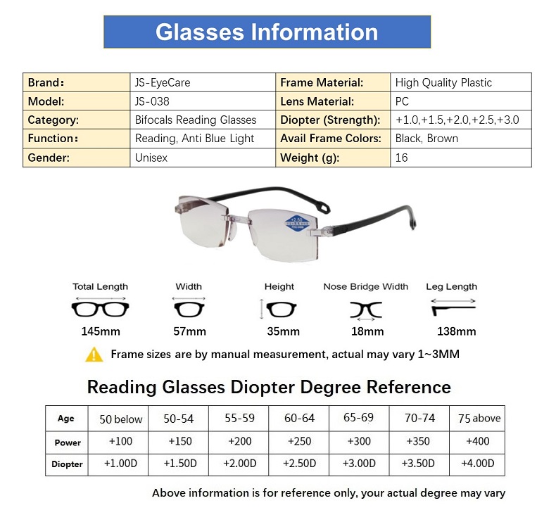 (Gift for Parents) Bifocals Presbyopic Presbyopia Reading Glasses Anti Blue Light Anti Glare (JS-038)