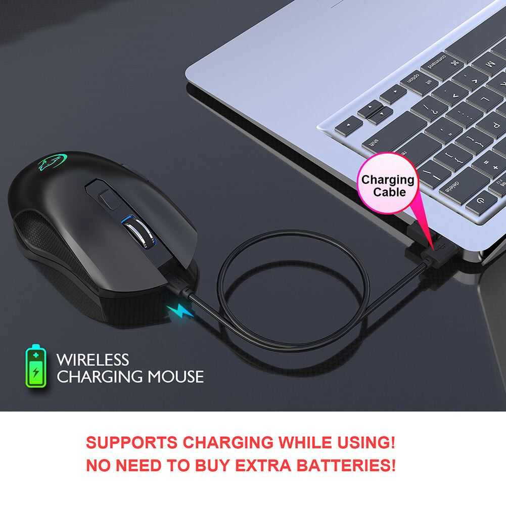 G851 Wireless Mouse 2.4GHz Receiver 2400DPI Rechargeable Colorful Mute Office Gaming Mice for Laptop Desktop PC Computer Compatible with Mac OS Windows