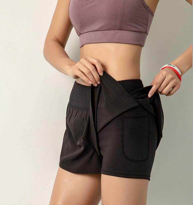 2022 Ready Stock Women Sport Pants 2 Layers Fitness Gym Safety Pants Running Short Sport Pants Quick Dry Breathable Gym Jogging Sport Shorts