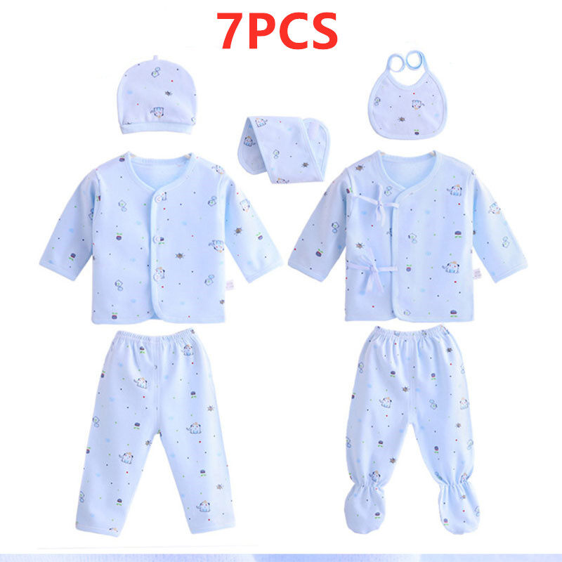 7PCS Newborn Baby Clothes 0-3M Spring Summer Cartoon Print Newborn Boy Girl Clothing Gift Set Cotton New Born Baby Outfit