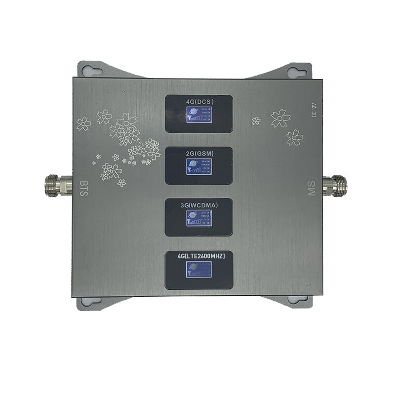 900 1800 2100 2600mhz Four band Mobile Amplifier repeater GSM 4G repeater 2G 3G 4G repeater LTE DCS cellular Signal Booster 2600 GSM 900mhz Frequency Range: Uplink:890-915mhz Downlink:935-960mhz DCS 1800mhz Frequency Range : Uplink:1710-1785mhz Downlink:1805-1880mhz WCDMA 2100mhz Frequency Range: Uplink:1920-1980mhz Downlink:2110-2170mhz LTE 2600mhz Frequency Range : Uplink: 2500-2570MHz Downlink: 2620-2690 MHz How to work: 1.Outdoor antenna (Yagi antenna) receive the signal from base station. 2.Then, sends the signal to repeater through long cable 3.The repeater receives the signal and improves it. 4.After that, signal into the indoor antenna(panel/ceiling/whip antenna),finally your mobile phone signal will improve.