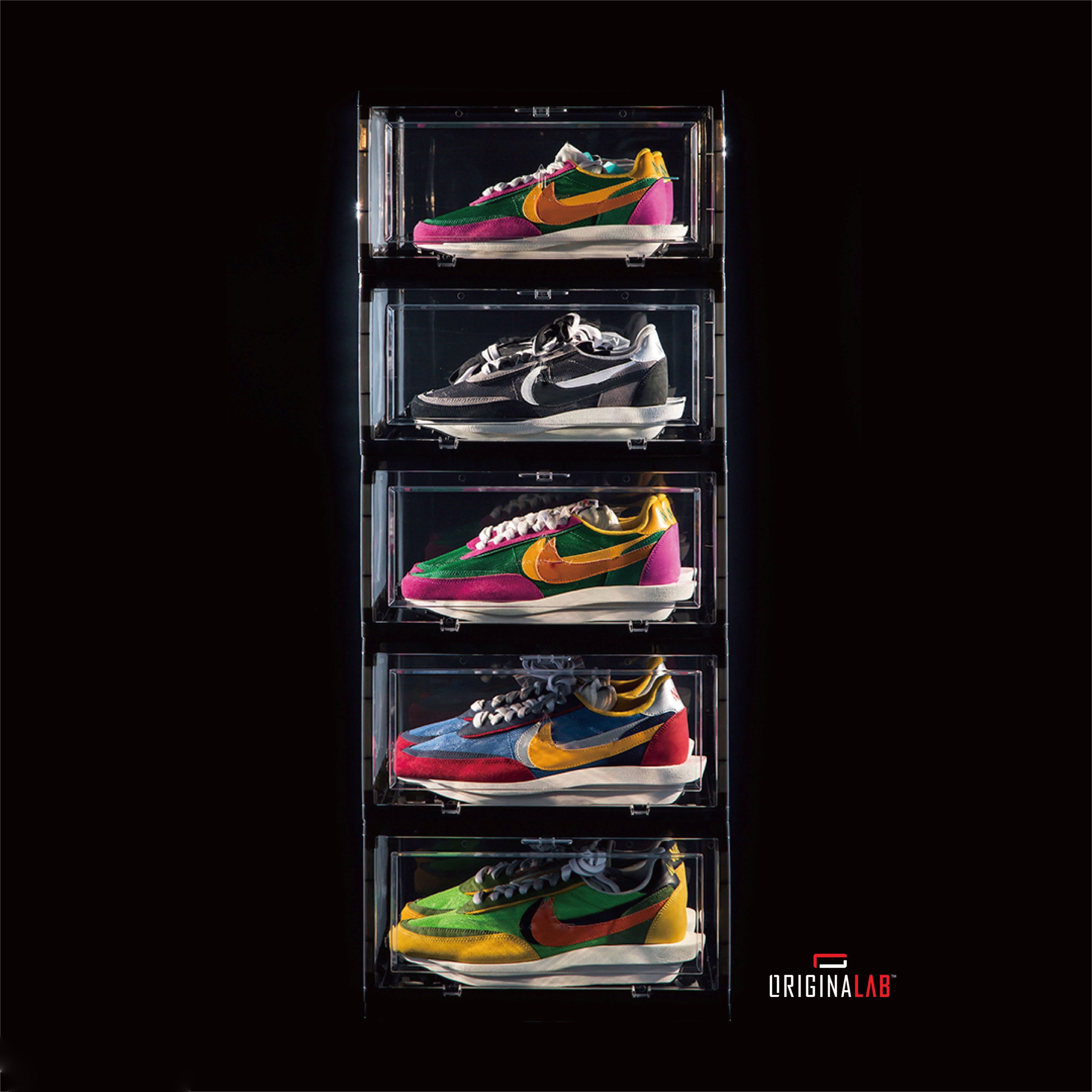 The magnetic door is made of High Clarity PS Polystyrene (Abrasion Resistant), allowing for a clear view of the displayed product. Only available in ORIGINALAB Premium Shoe Box.
