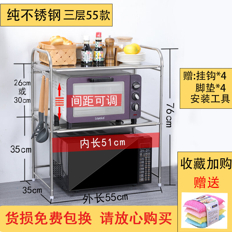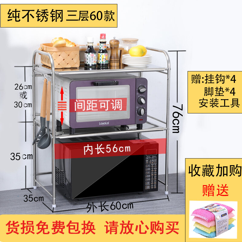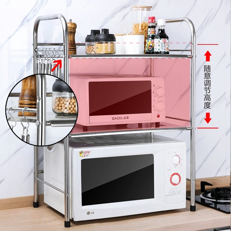 Kitchen Storage Microwave Oven Shelf Stainless Steel Oven Storage Rack Seasoning Rice Cooker Household Table Desktop 2 Layers