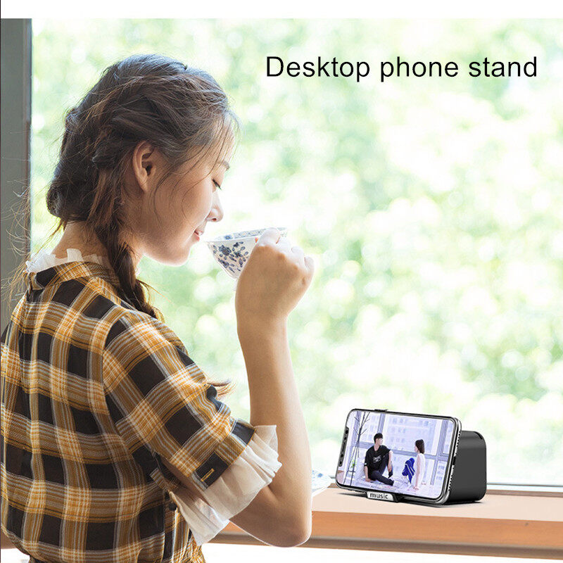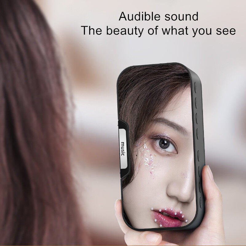 The multifunctional bluetooth speaker support bluetooth, AUX, and TF card, and with FM, alarm clock, makeup mirror, phone holder, night light and collection reminder function.