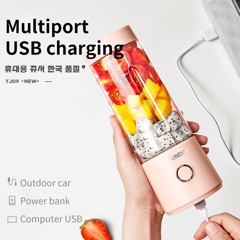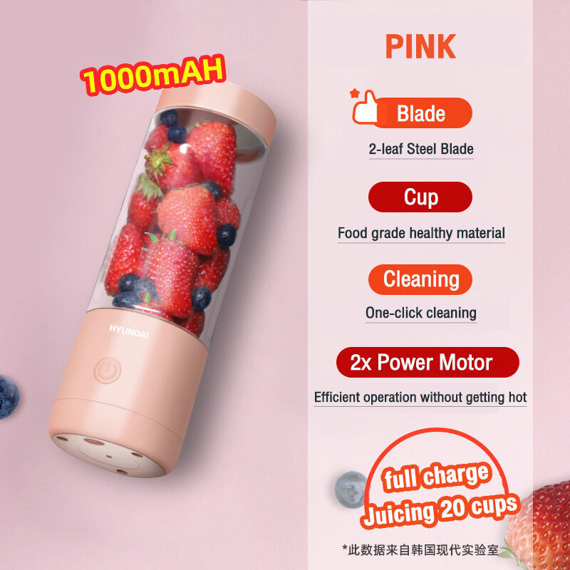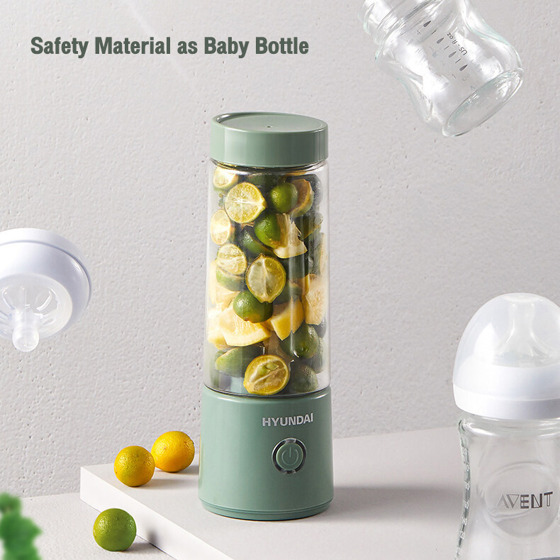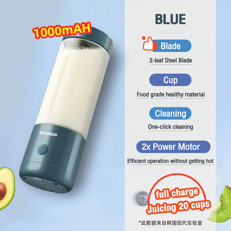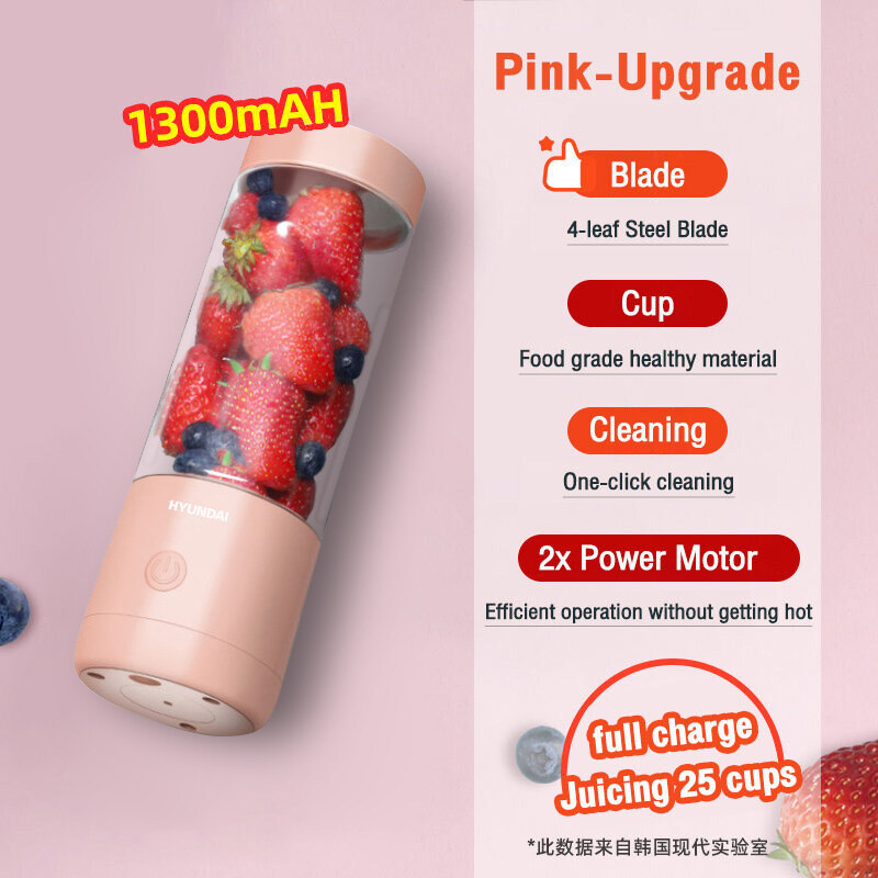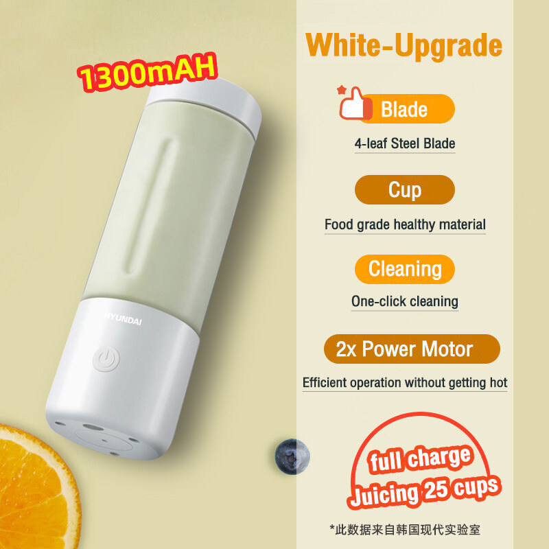-Hyundai 400ML Fruit Blender Juicer Cup 1300mAh 4 Blades Wireless Portable Mini USB Rechargeable Blender Mixer Waterproof