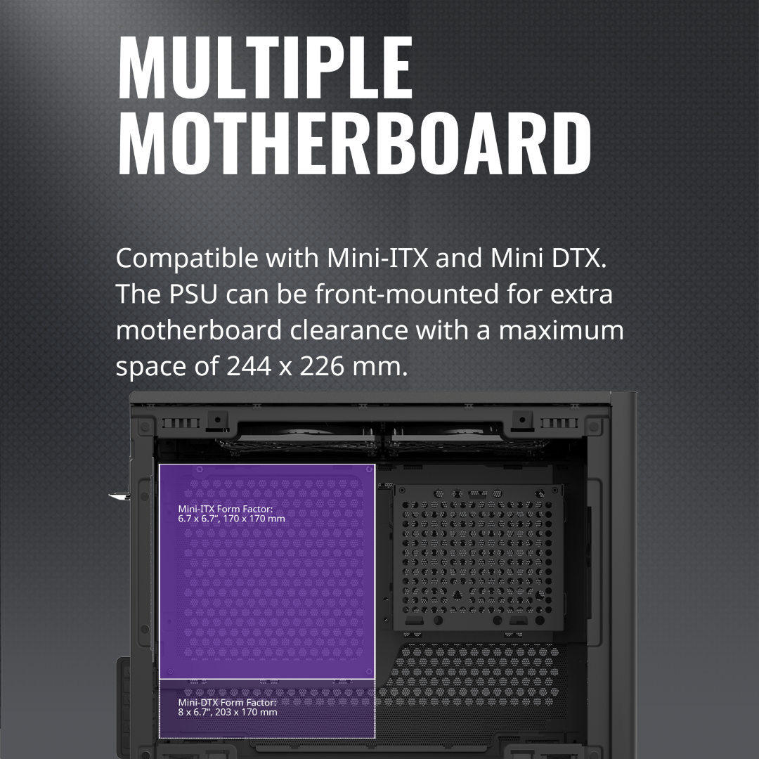Cooler Master MasterBox NR200P Mini-ITX Case, 18L, Modular Structure, Dual SickleFlow 120 Fans, Triple-slot GPU Support with Vertical Riser Cable, Ventilated Steel and Tempered Glass Side Panels, Tool