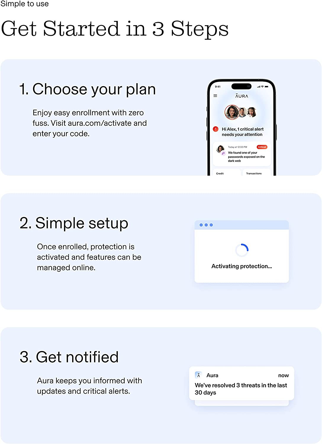 PROTECT YOUR ONLINE ACCOUNTS: Worried about data breaches? Aura lets you know if your online accounts were exposed and helps you secure them.