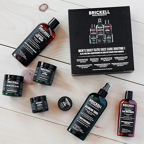 Brickell Men's Daily Elite Face Care Routine I, Toner, Gel Facial Wash, Face Scrub, Anti-Aging Night Cream, Eye Cream, Charcoal Mask and Moisturizer, Natural and Organic, Scented