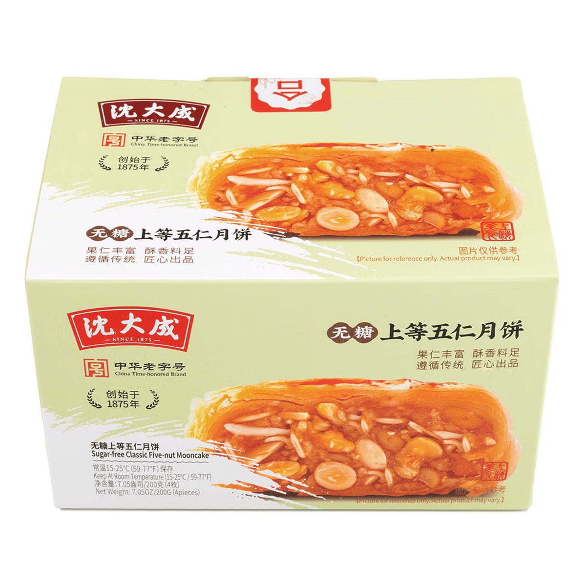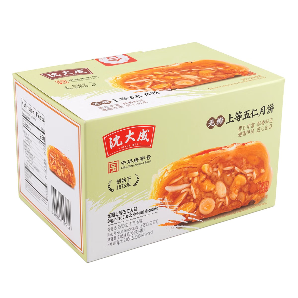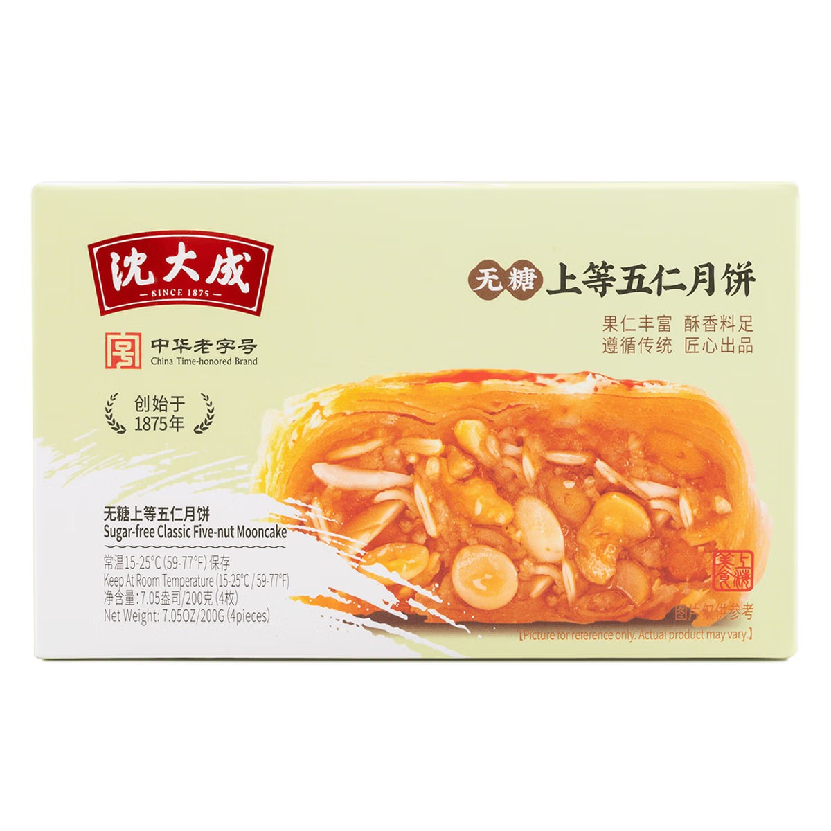 Suzhou-style five-nut and multi-flavor mooncakes, sugar-free, fine sand crispy biscuits, a Shanghai specialty for the Mid-Autumn Festival, 4 pieces, 200g