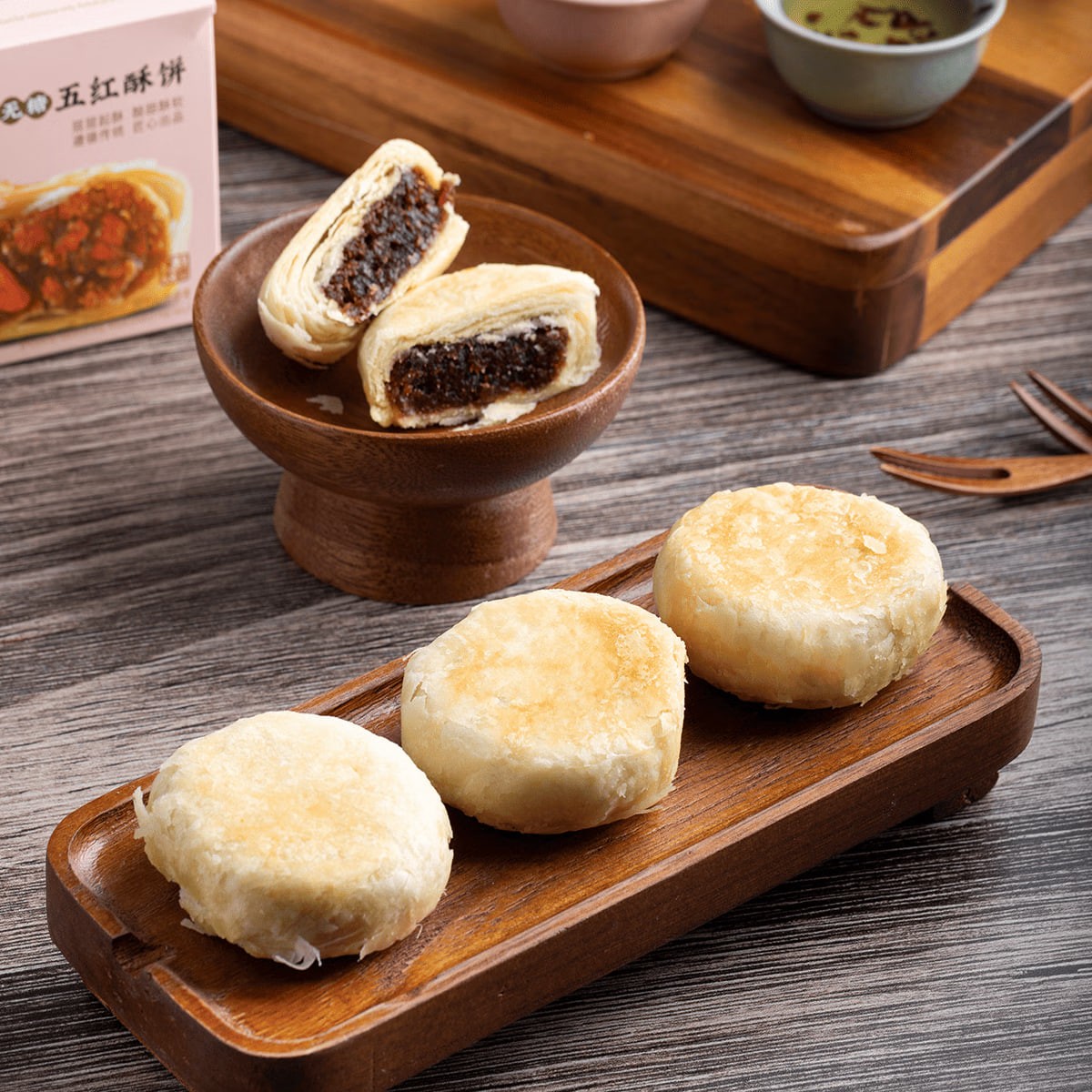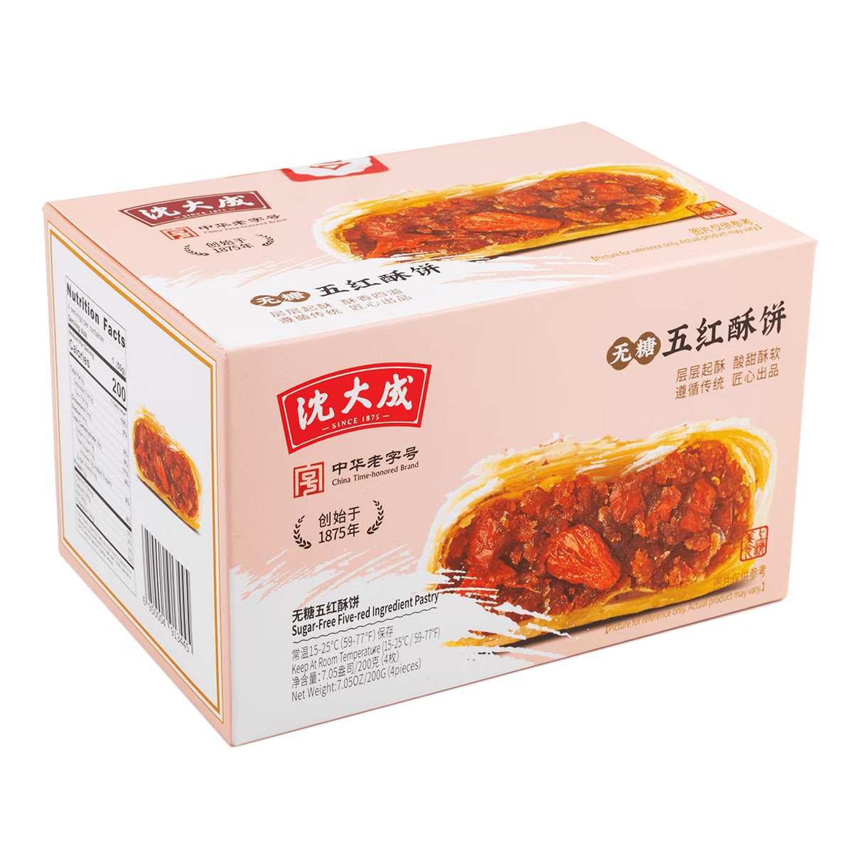 Su-style Five-Red Multi-Flavor Mooncakes, Sugar-Free, Fine Sand Shortbread, Mid-Autumn Festival Shanghai Specialty, 4 pieces, 200g. Suitable for those with diabetes.