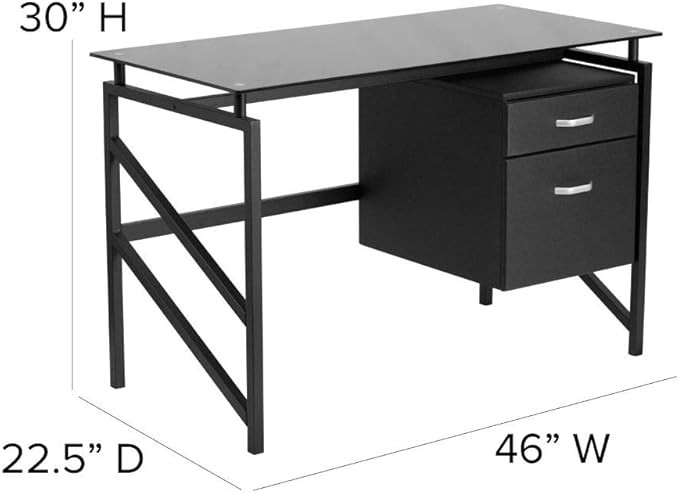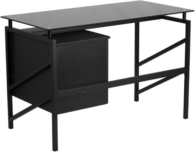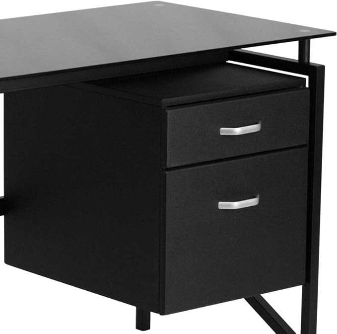 Black tempered glass surface, 8mm thick glass, hanging box/file pedestal
