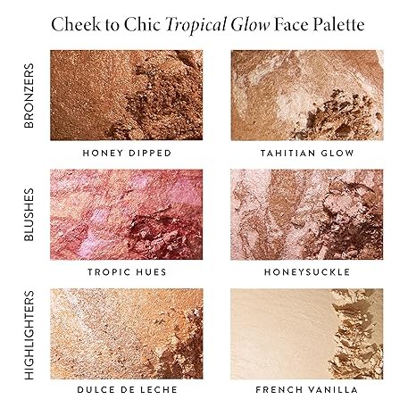 • CHEEK TO CHIC TROPICAL GLOW 6PC FACE PALETTE: Time to get cheeky! Laura Geller’s incredible makeup palette includes 6 bestselling face products to add a flush, contour with precision and create a luminous glow!