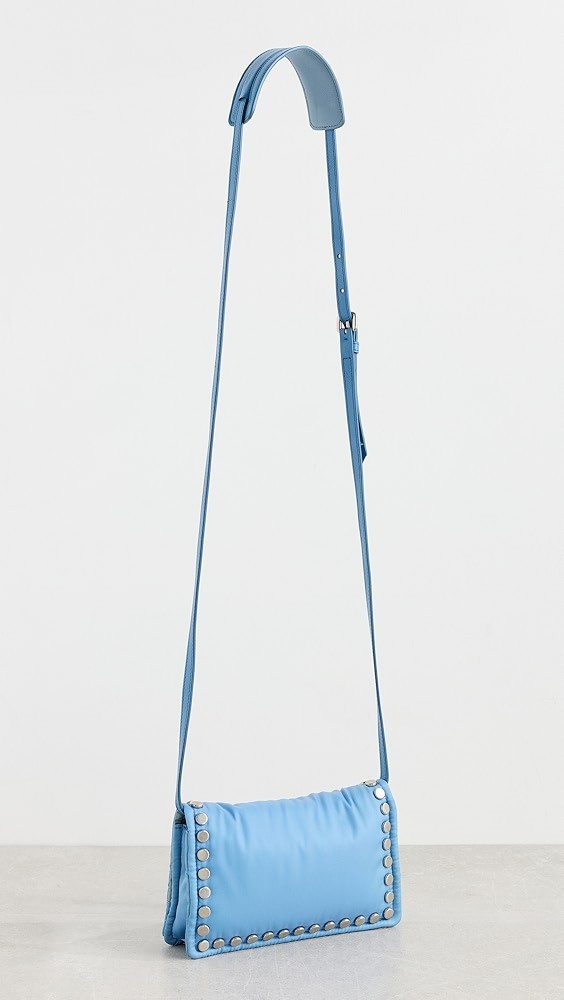 Prada Blue Nylon Studded Etiquette Wallet On Chain