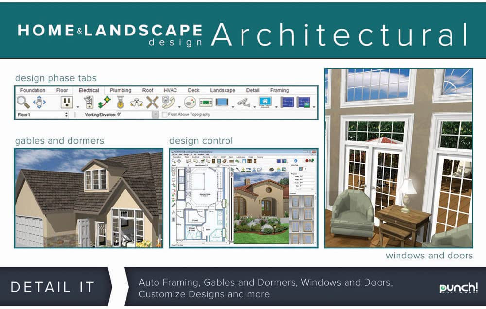 Design It - Detail It -Visualize It - Live ItEnhanced drawing tools, floor plans, brand name product libraries and photorealistic rendering capabilities make designing new homes more efficient, easier and exciting than ever! Whether remodeling, renovating, designing or building a brand new house, Punch! Home & Landscape Design Architectural Series v19 contains a powerful array of tools and features to help create unique, professional-level designs.