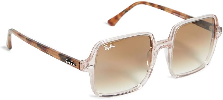 • RB1973 square II sunglasses: These Ray-Ban women's sunglasses feature an iconic oversized square Acetate frame in transparent light brown with gradient brown lenses and are prescription ready