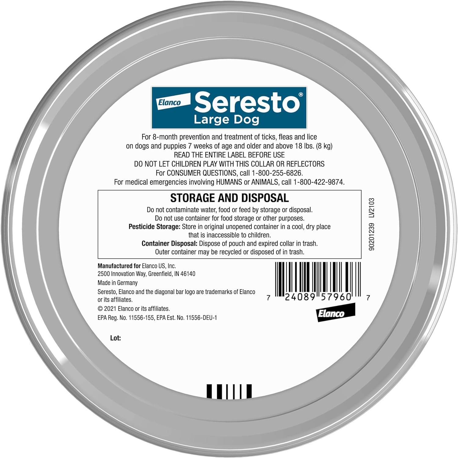 Seresto Large Dog Vet-Recommended Flea & Tick Treatment & Prevention Collar for Dogs Over 18 lbs. | 8 Months Protection
